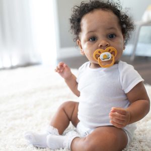 The Dr. Brown’s™ Advantage™ Pacifier is a fully symmetrical pacifier. with reversible bulb that fits in baby’s mouth either right-side up or upside down.