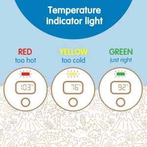 • Temposaurus™ accurately and quickly checks your little one’s bath water temperature every fifteen seconds