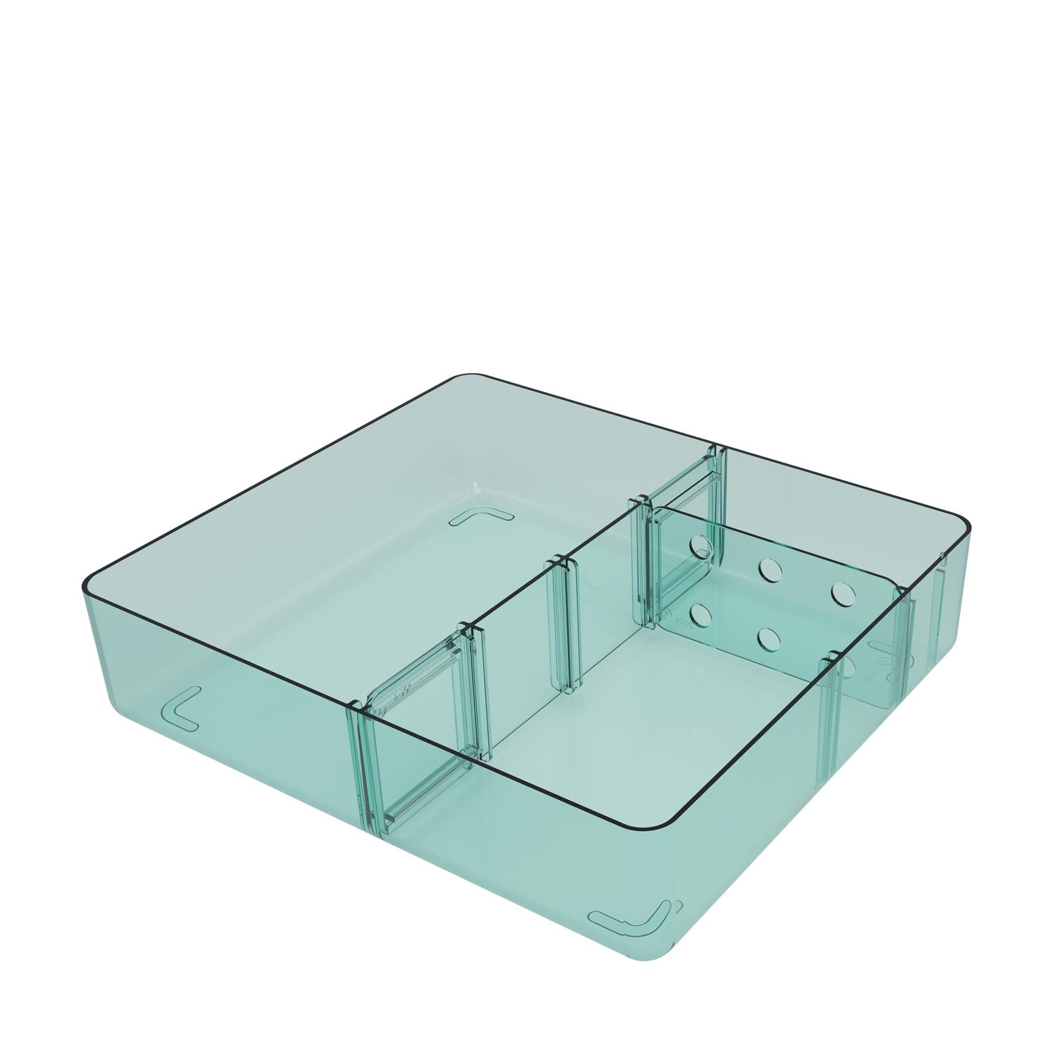 - Removable piece with holes can be positioned vertically to use as a divider. or horizontally to store vents upright