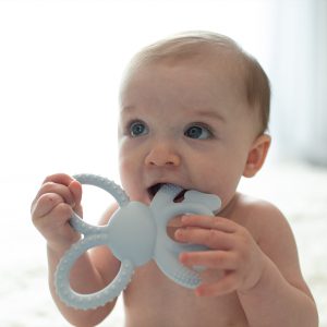 Help soothe baby’s teething discomfort with the bitable. chewable Flexees Bunny Teether. made of soft and durable 100% silicone. The unique design reaches all areas of baby’s mouth. featuring flexible ears that bend to soothe hard-to-reach areas like molars.