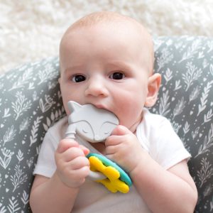 Dr. Brown’s® Learning Loop Silicone Ring Teether uses texture and color to help baby develop while soothing sore gums. The 100% silicone teether features four different textures and is easy for little fingers to grip.