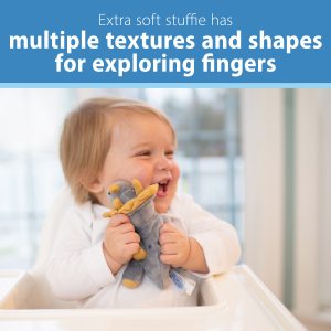 - Soft multi-textured materials to keep exploring fingers happy and stimulated • Grows with baby – soothing newborn to soothing sore gums