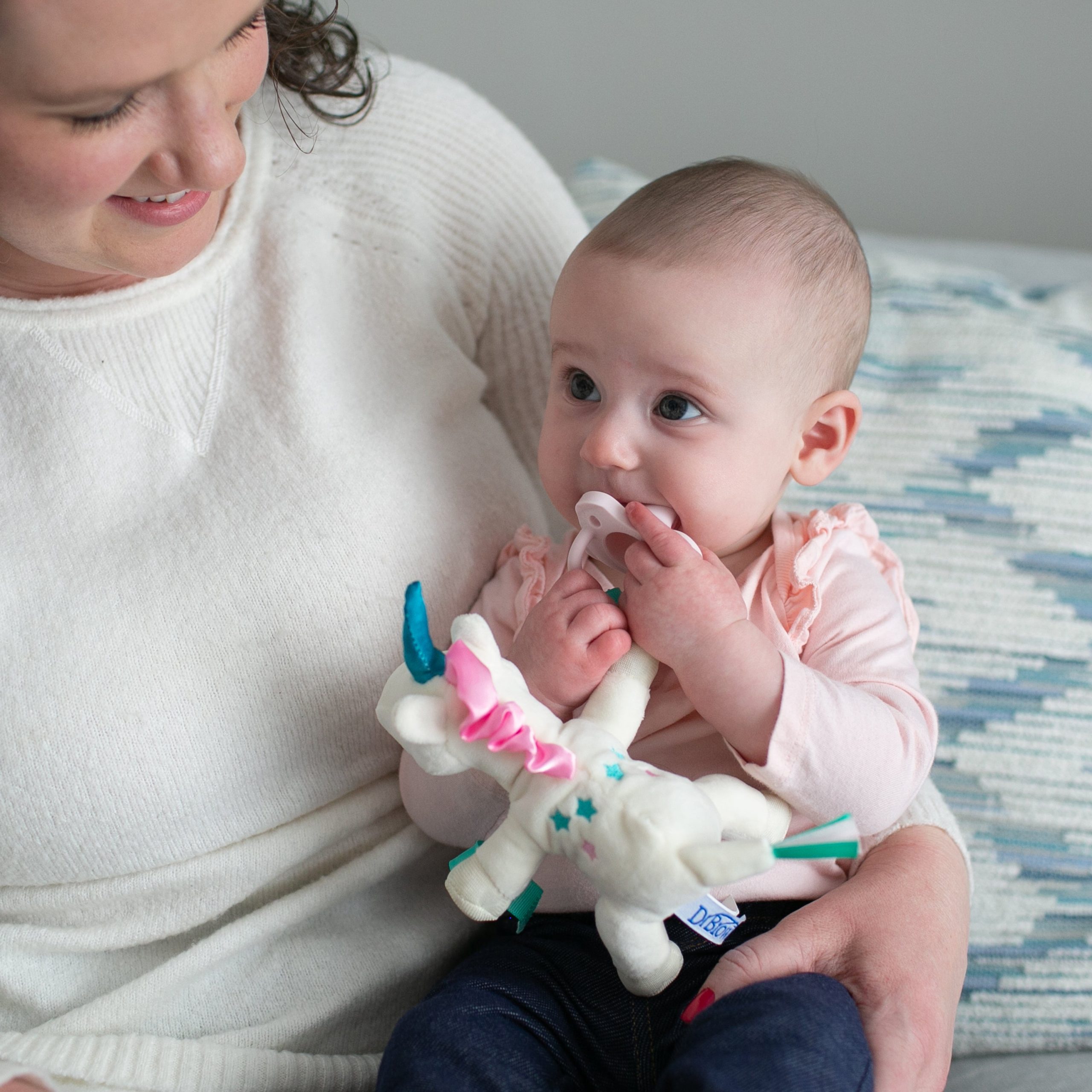 The best things in life are made with Lovey! Dr. Brown’s® Lovey Pacifier and Teether Holder is the perfect companion for your little one’s self-soothing journey. This adorable Lovey is designed to keep pacifiers and teethers close by.