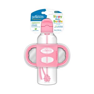 Dr. Brown's Milestones Narrow Sippy Straw Bottle with Silicone Handles. 8 oz/250 mLDr. Brown’s Milestones Narrow Sippy Straw Bottle with Silicone Handles. 8 oz/250 mL