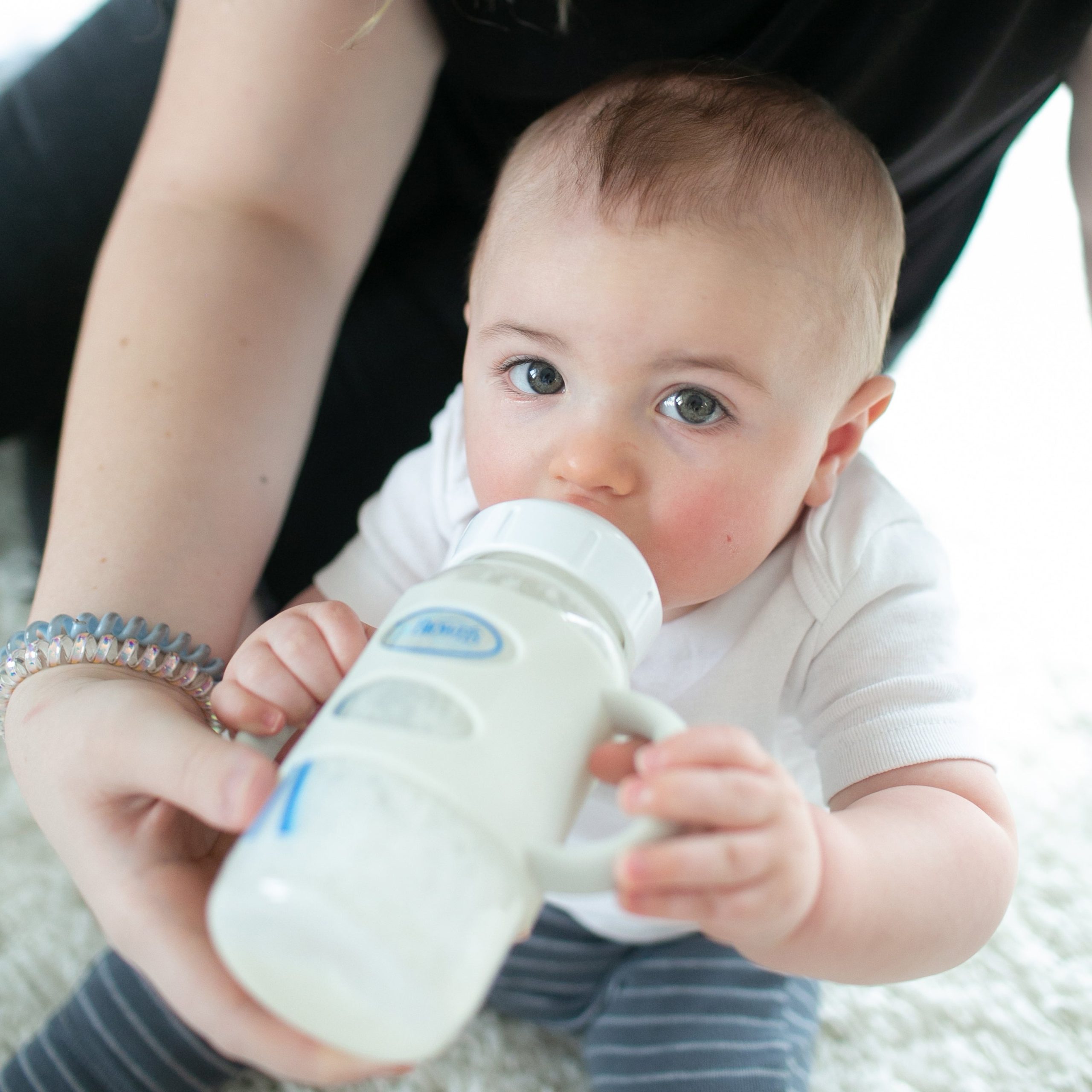 • As baby’s feeding progresses. introduce grippy silicone handles to help them develop independent drinking skills and transition from bottle to cup