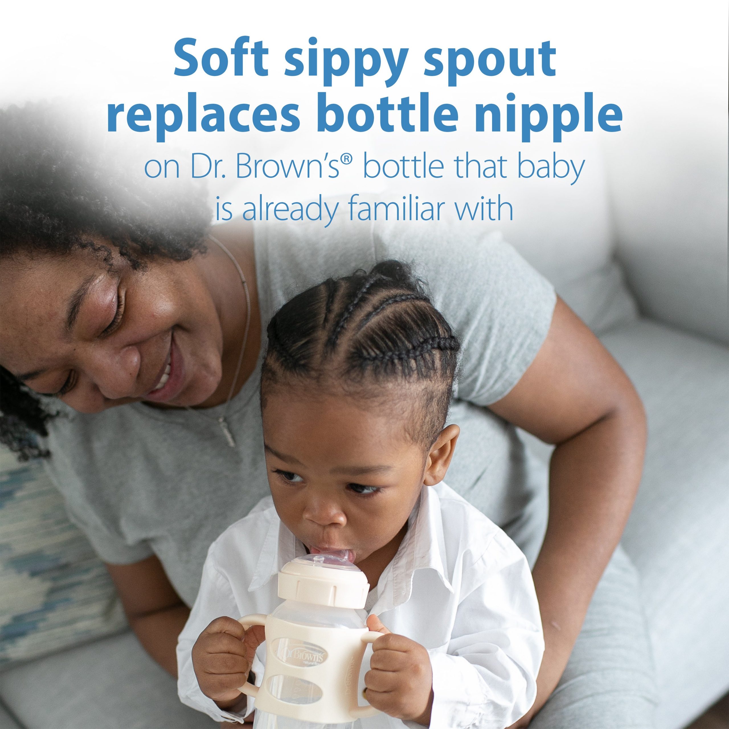 Dr. Brown’s Milestones Sippy Spout Bottle is the easy way to help baby develop new drinking skills! Introducing a sippy spout has never been simpler. The soft silicone sippy spout is used in place of the nipple on the Dr. Brown’s bottle that’s already familiar to baby.