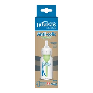 Your options have never been better with Dr. Brown’s Natural Flow® Anti-Colic Options+™ Narrow Glass Baby Bottle. The anti-colic internal vent system is clinically proven to reduce colic. Dr. Brown’s® bottles provide a more comfortable feeding experience for baby by decreasing spit-up. burping and gas.