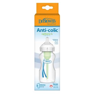 Your options have never been better with Dr. Brown’s Natural Flow® Anti-Colic Options+™ Wide-Neck Baby Bottle. The anti-colic internal vent system is clinically proven to reduce colic. Dr. Brown’s® bottles provide a more comfortable feeding experience for baby by decreasing spit-up. burping and gas