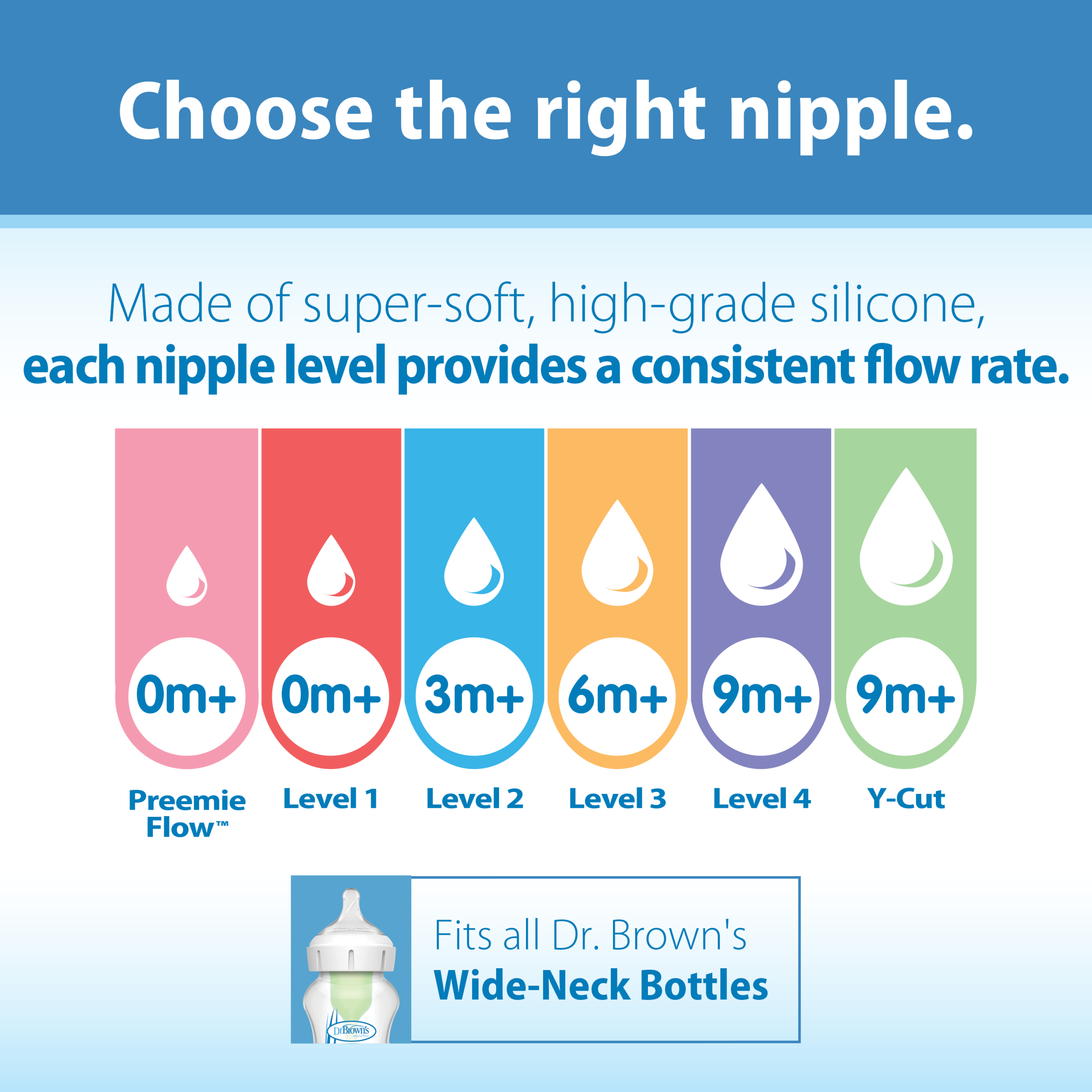 - Super-soft 100% silicone nipple fits all Dr. Brown’s® Anti-colic Options+™ Wide-Neck bottles