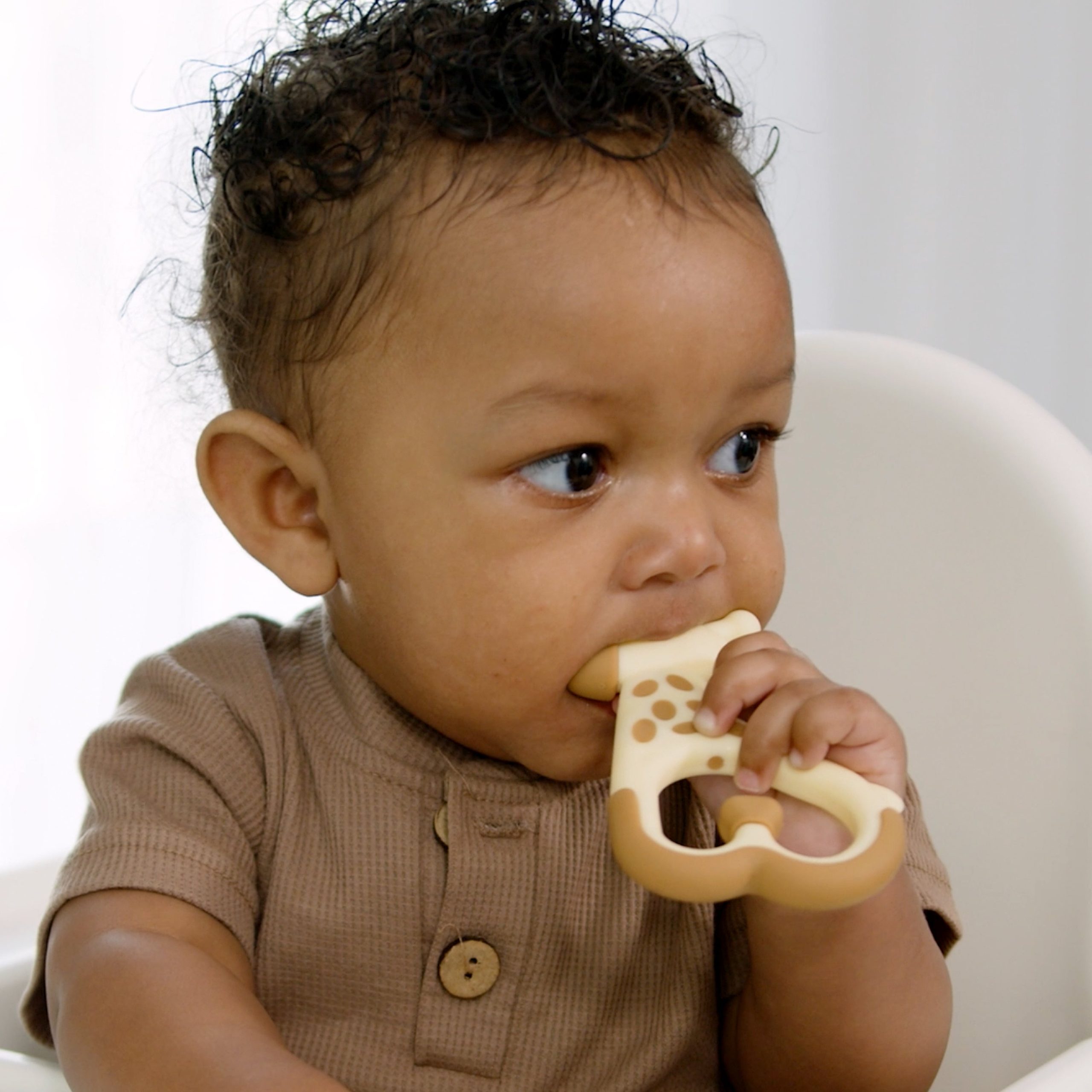 Get baby’s mouth moving against teething pain with Dr. Brown’s™ Ridgees™ Giraffe Teether. Help baby work out pain and discomfort with the bitable. chewable Ridgees™ Teether. designed by a pediatric dentist.